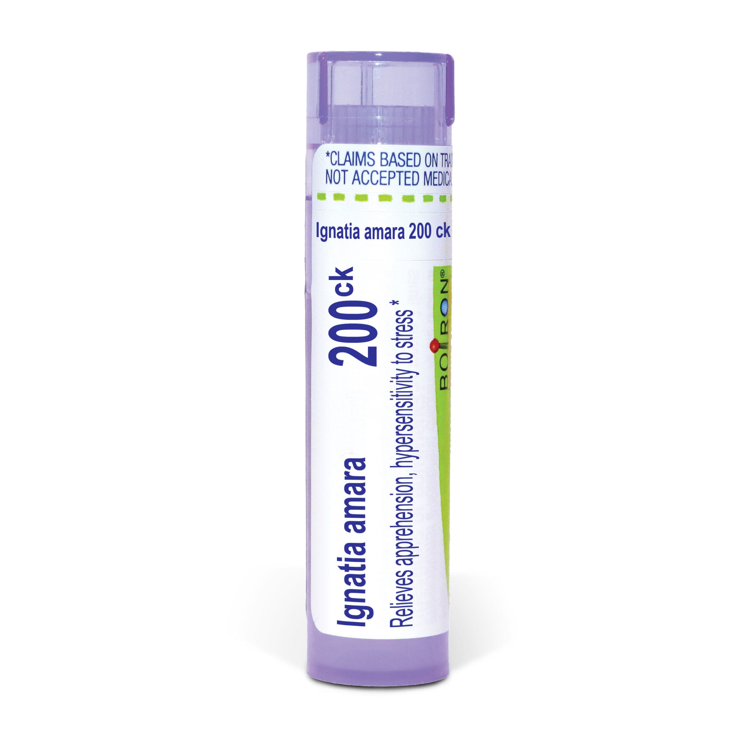 Customize your care with Boiron single medicines for highly targeted relief. Ignatia Amara is a homeopathic medicine that relieves apprehension, hypersensitivity to stress.* The pellets melt in your mouth and can be taken on the go, no food or water needed.
